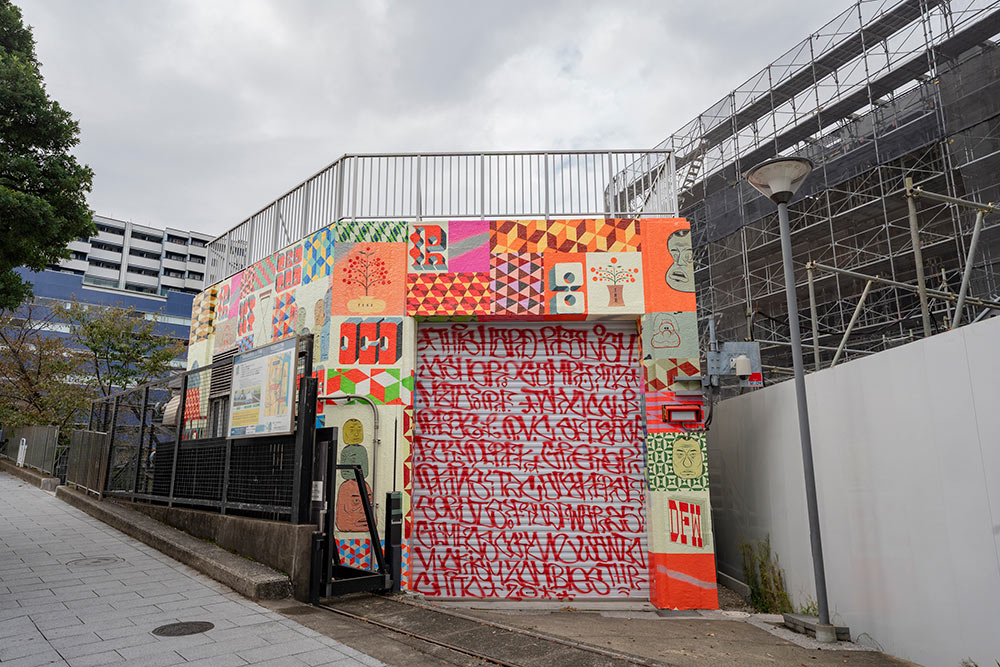 東京/ 天王洲の活気あるイメージをグラフィティを通して描いています。描かれているのは、天王洲の海辺や、道を行きかう人々の足、運河沿いに見えるビル群です。これらの絵は、実はグラフィティの文字になっていて、それらが重なり合い街の活気あり雑多なイメージを描きました。PROFILE